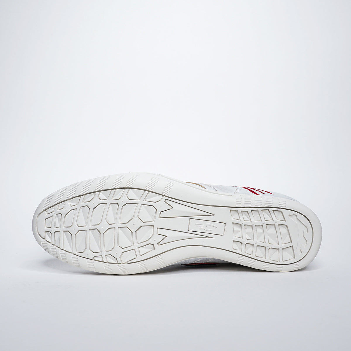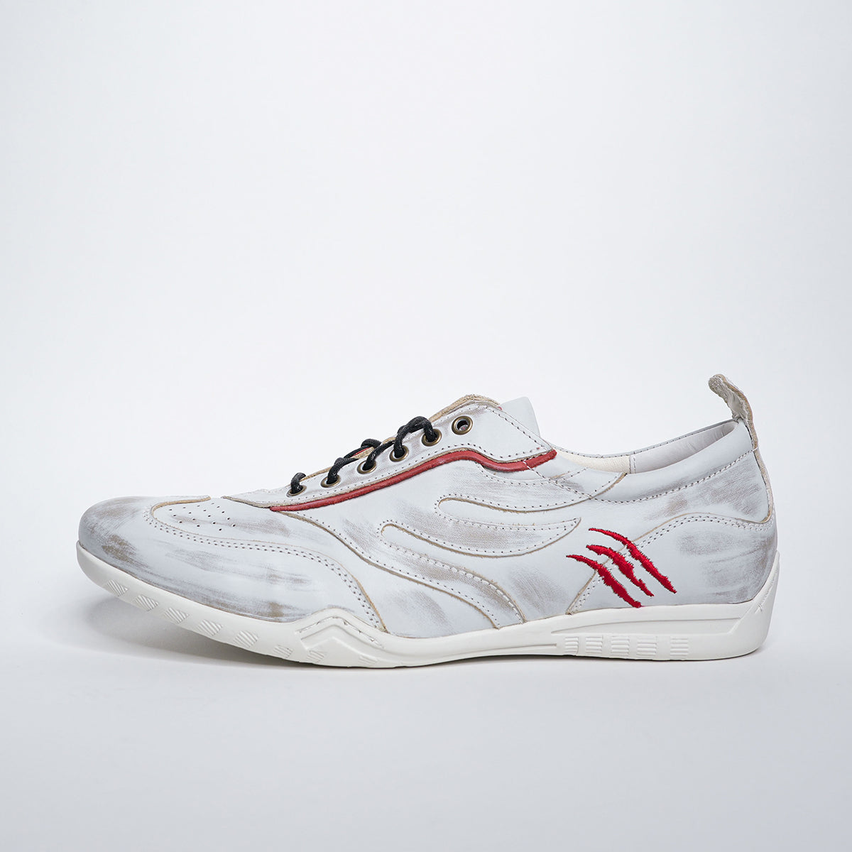 さらにサイドには、ブランドのアイコンである“爪痕”のような3本の赤い刺繍ラインを配置。 攻めたデザインの中に、ブランドの魂を宿した一足です。