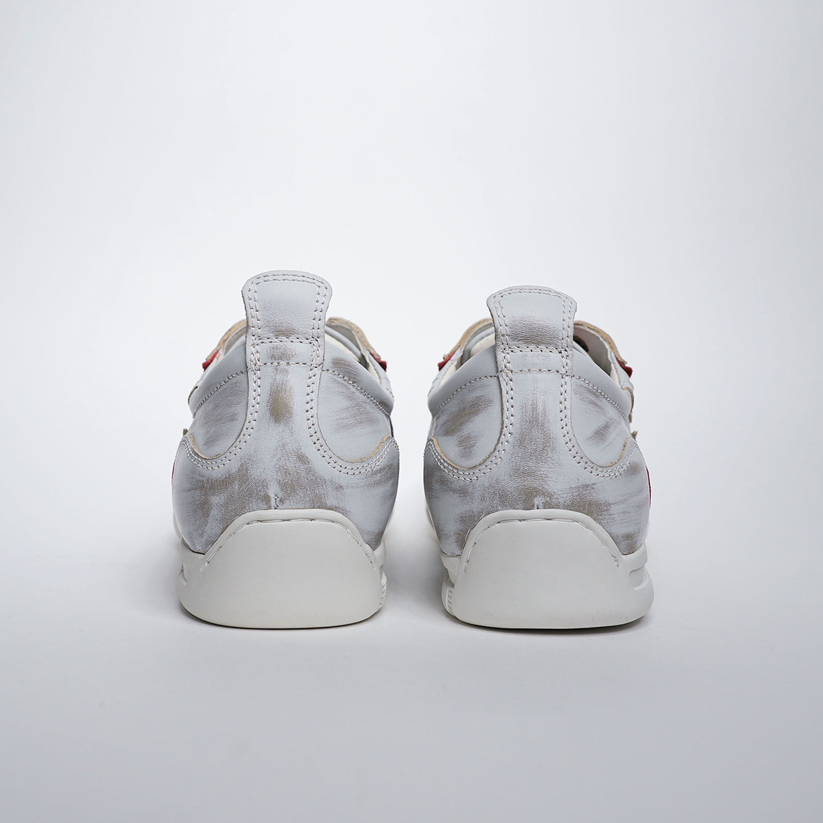 最大の特徴は、アッパーに施されたユーズド加工(ダメージ風仕上げ)。