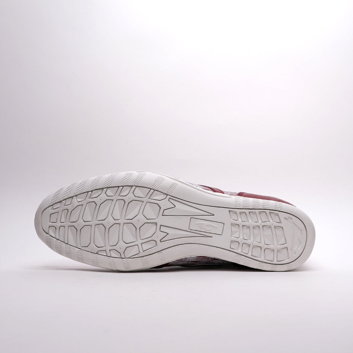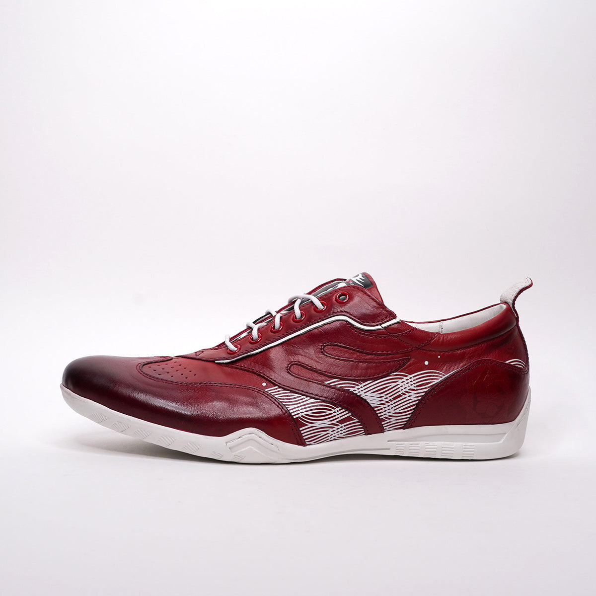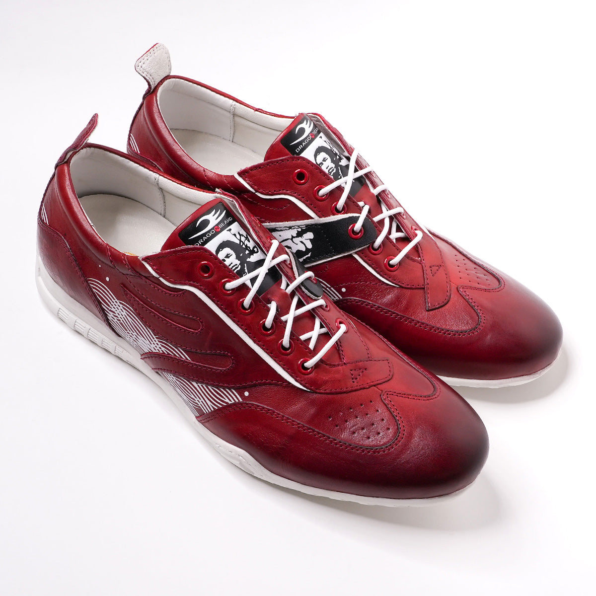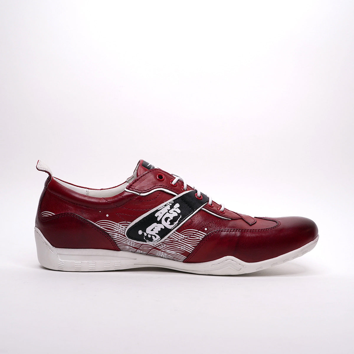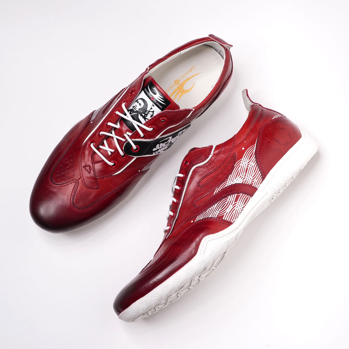 アッパーには深みのあるレッドの上質な天然皮革を使用。サイドには波模様の和柄プリントが施され、龍馬が夢見た“時代のうねり”を象徴しています。
