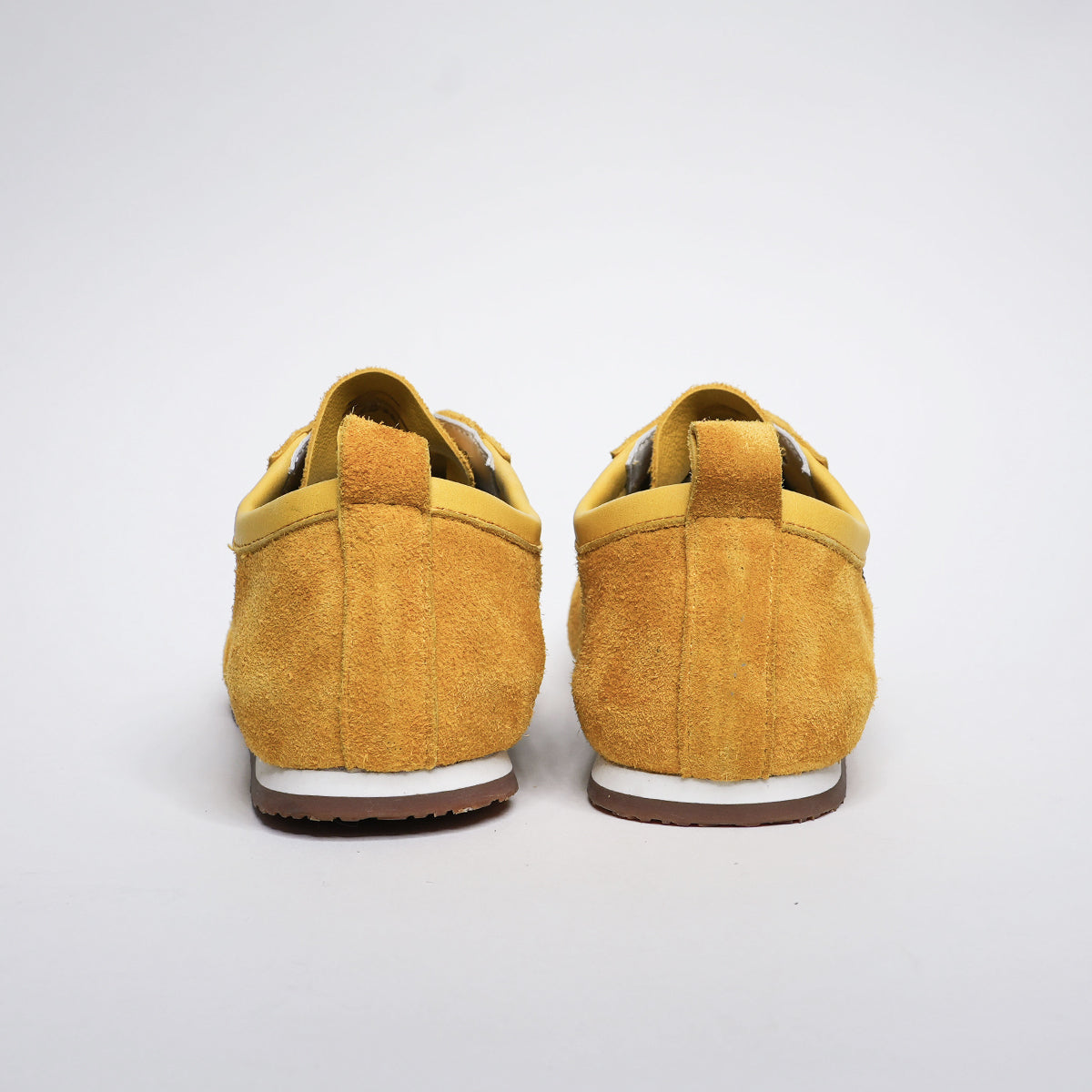 アッパー部分は、革の裏面であるスエード素材を使用し、柔らかく足馴染みの良い質感に仕上げています。一方、シューズ内部(ライニング)には革の表面をそのまま活かすことで、一足で表と裏、異なる革の表情を同時に楽しむことができる仕様です。